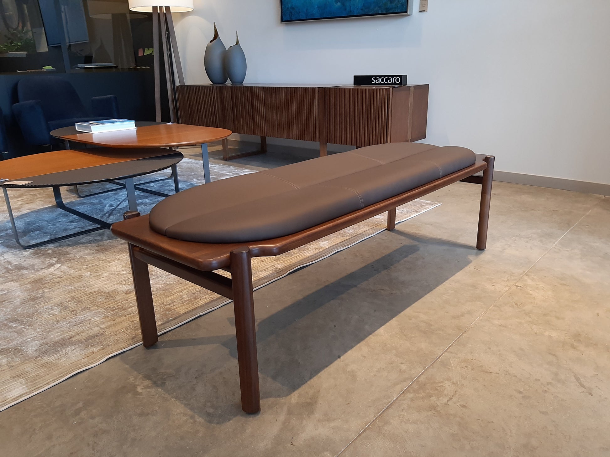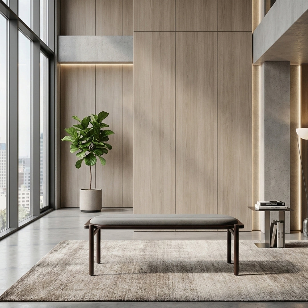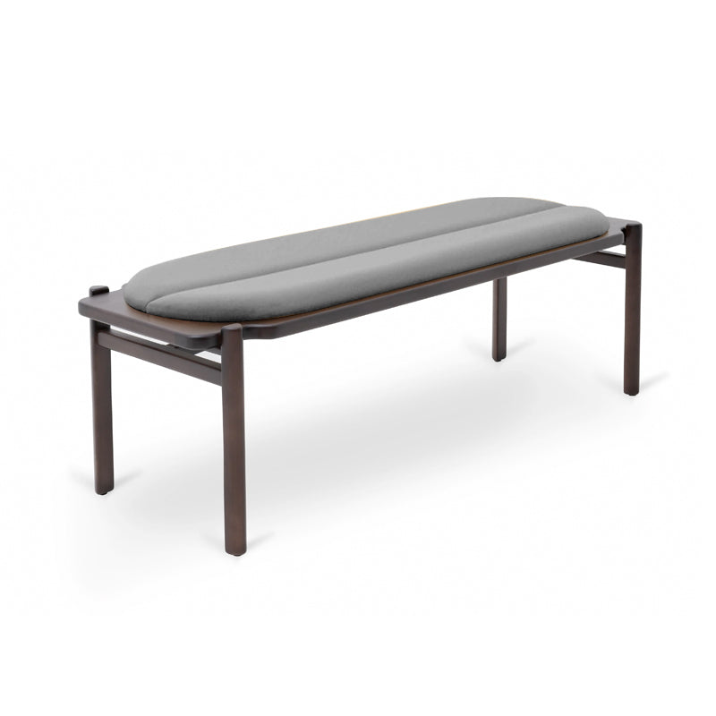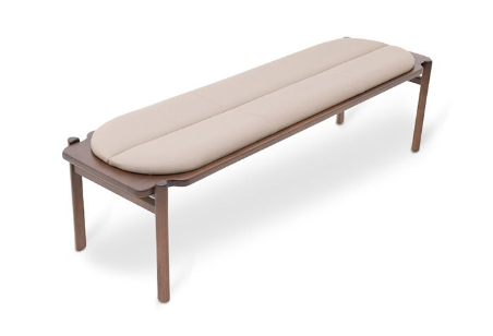 The Gianduia Bench with wooden base and upholstered seat is available in 2 and 3 seater versions. It has a contemporary look combined with comfort and functionality, which allows you to integrate different spaces, from living rooms, entrance halls, rest spaces, passageways and even bedrooms. It has a good variety of finishes, whether in the wooden structure or in its seat, which can be in fabric, leather or suede.