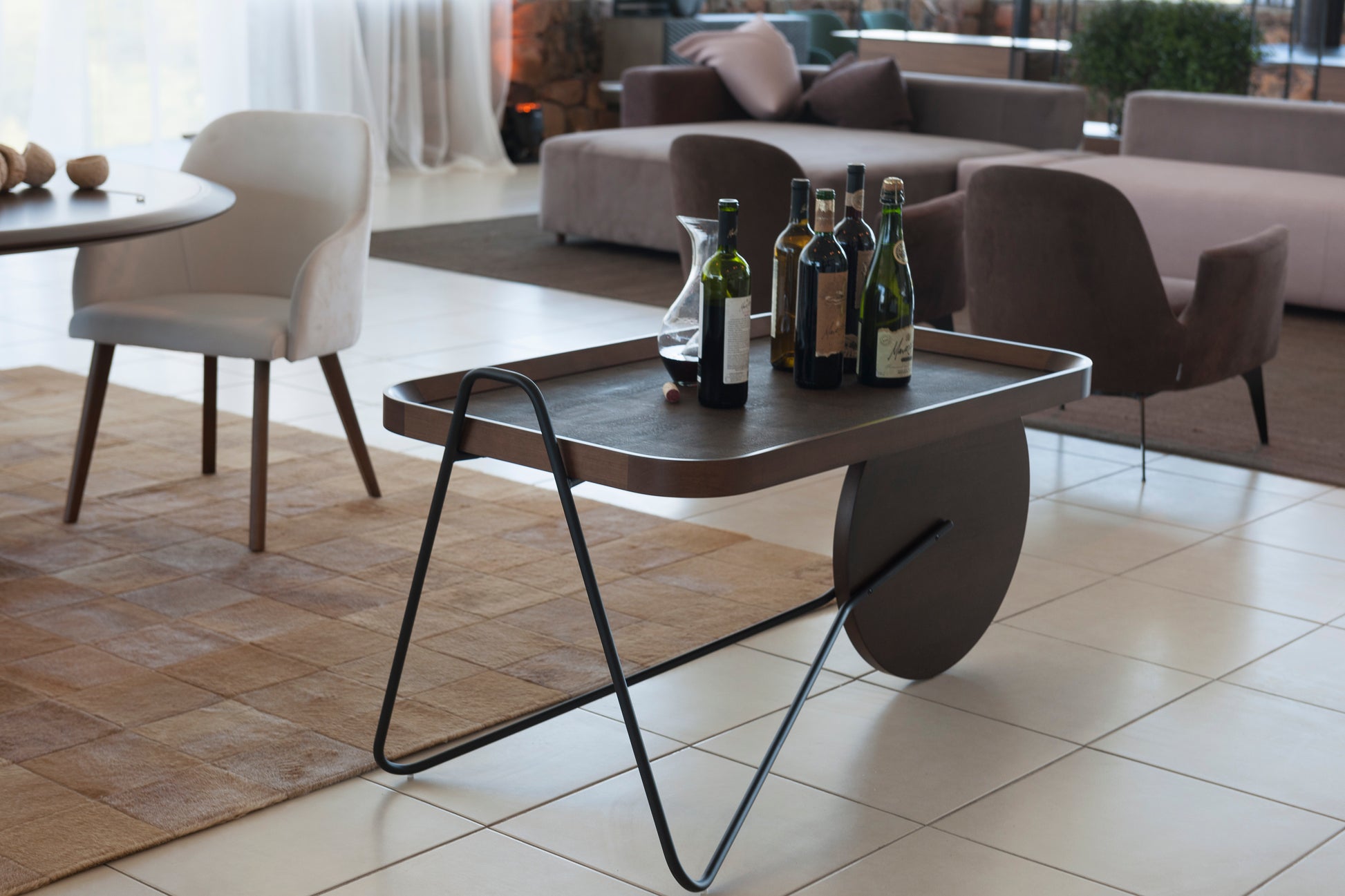 Modernismo al estilo brasileño y minimalismo cálido. Un carrito de bar con refinamiento estético e inspirado en el diseño de la vanguardia modernista brasileña con toques de minimalismo. Aporta la frescura y los rasgos sutiles y gestuales de sus formas ligeras y innovadoras, ideal para todo tipo de entorno.