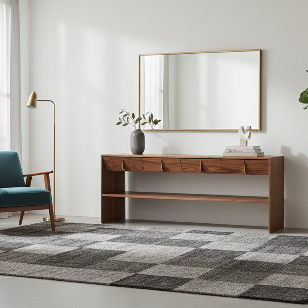 La mezcla de líneas ortogonales e inclinadas son los elementos que dan sentido al diseño de la Edge Trimmer. Elegante, el aparador cuenta con balda, espacios internos a través de sus cajones que se rematan con un tirador de diseño exclusivo.