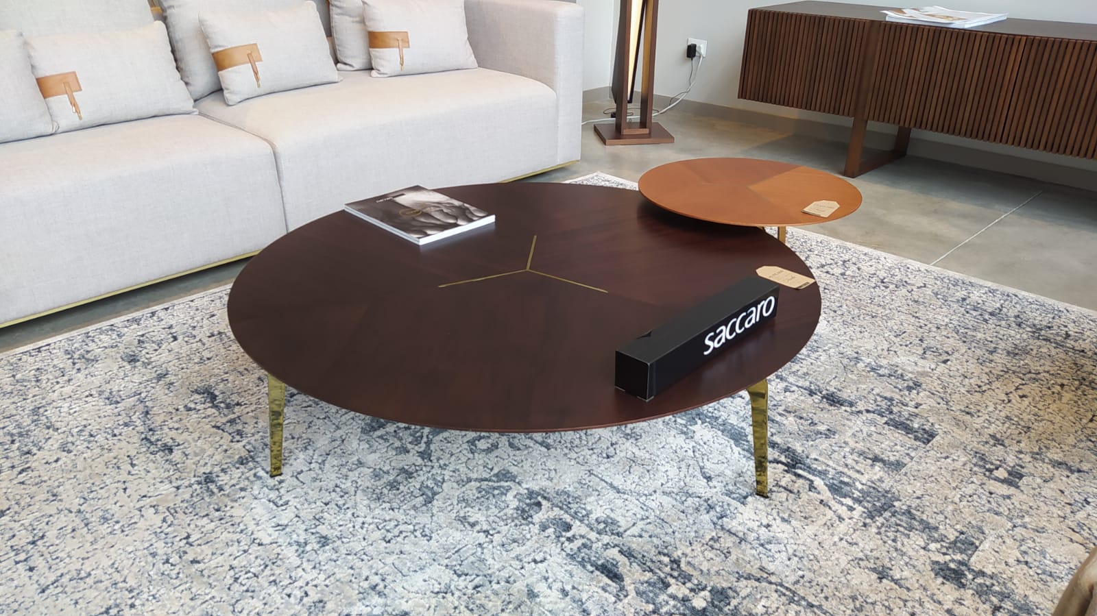 La propuesta de las mesas se basa en la idea de agregar dos unidades o más, permitiendo una formación orgánica en el espacio donde se encuentran. Para que esto funcione de manera fluida, la base tiene solo tres pies, por lo que es posible colocar más mesas, ya que no hay pies en exceso que perturben la composición. El toque de metal añadido a los tableros flotantes sobre los pies garantizan una apariencia más ligera y refinada.