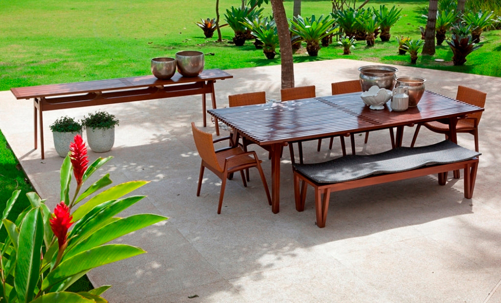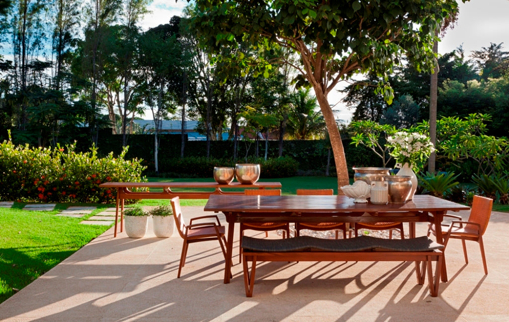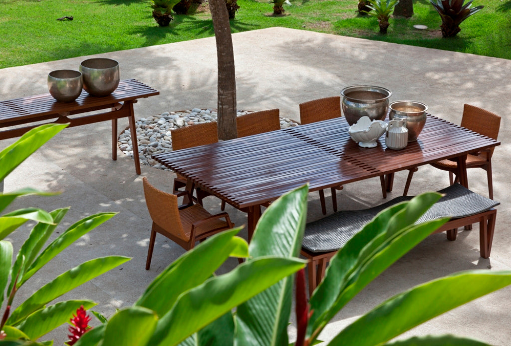 Colección de muebles de jardín de madera de garapeira. Aquí es donde descansarás tu mente y espíritu. La colección Ayty está compuesta por piezas que traducen el verdadero significado de estar en contacto con la naturaleza. El acabado, naturalmente rústico, cambia sobre la madera expuesta a la intemperie, según la región, dejando que la naturaleza deje sus marcas. La colección Ayty está formada por piezas de grandes dimensiones para jardines, piscinas y terrazas, que destacan por el confort y la relajación total del cuerpo. Ha sido concebida para que las pocas horas de ocio que tenemos se transformen en incansables momentos de placer, extendiéndose fuera de casa. La madera representa la fuerza de la naturaleza, fuerte contra el tiempo y rústica en su acabado. Las telas ligeras y los cojines sueltos son la naturaleza acogedora que se amolda al cuerpo.