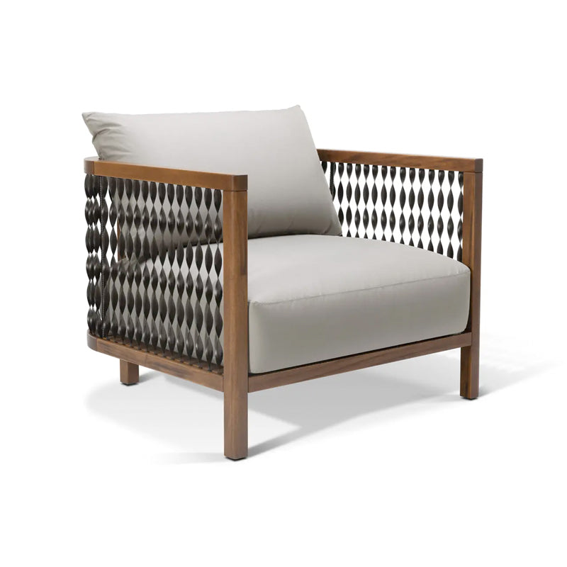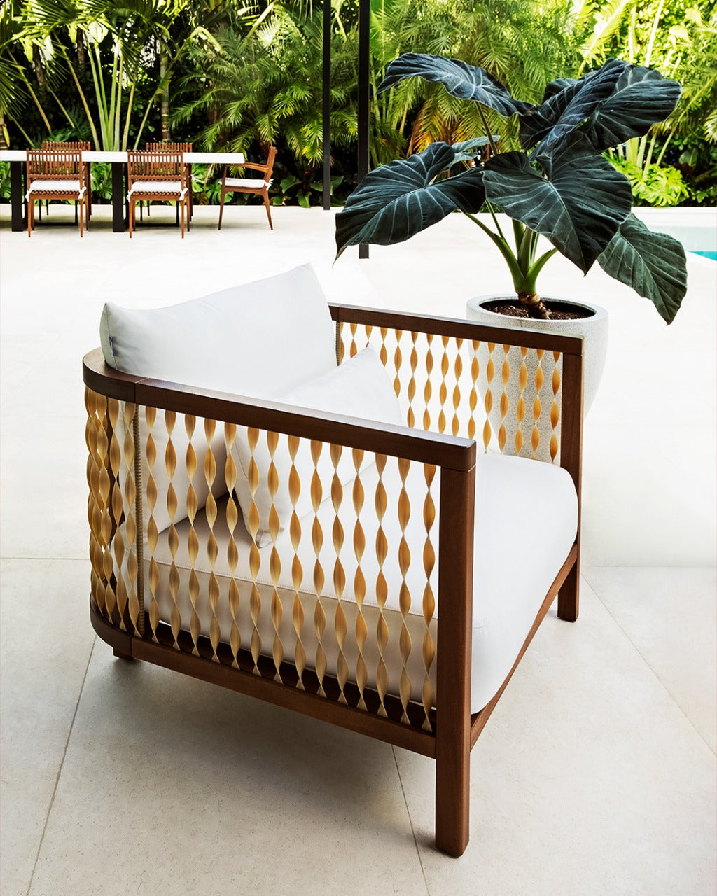 La cultura de los primeros habitantes de la Polinesia es la inspiración de la colección Maori, que buscó la referencia a los elementos característicos de este pueblo, como la construcción de sus hábitats y sus tatuajes, para crear los detalles clave de sofás, tumbonas, sillones y mesas. En esta propuesta aparecen las fibras retorcidas y los recortes de madera con diseños geométricos, que recuerdan las imágenes corporales de los miembros de la tribu. Llenas de volumen y movimiento, las piezas buscan traducir las sensaciones de la naturaleza en la ambientación de los espacios exteriores.