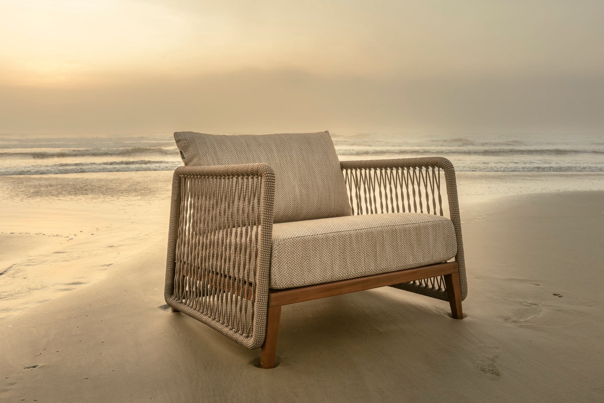 Mykonos, con sus hermosas playas de arena blanca y aguas cristalinas, tiene una atmósfera relajante y cosmopolita dibujada por sus increíbles paisajes naturales y casas históricas que acompañan al mar. Es en este escenario de completa relajación que se inspira la colección Mykonos. El trenzado retorcido, inspirado en la ondulación del mar generada por la suave brisa que, en contraste con la robustez de la madera, transforma el producto en una verdadera inspiración de calma en la vida cotidiana.