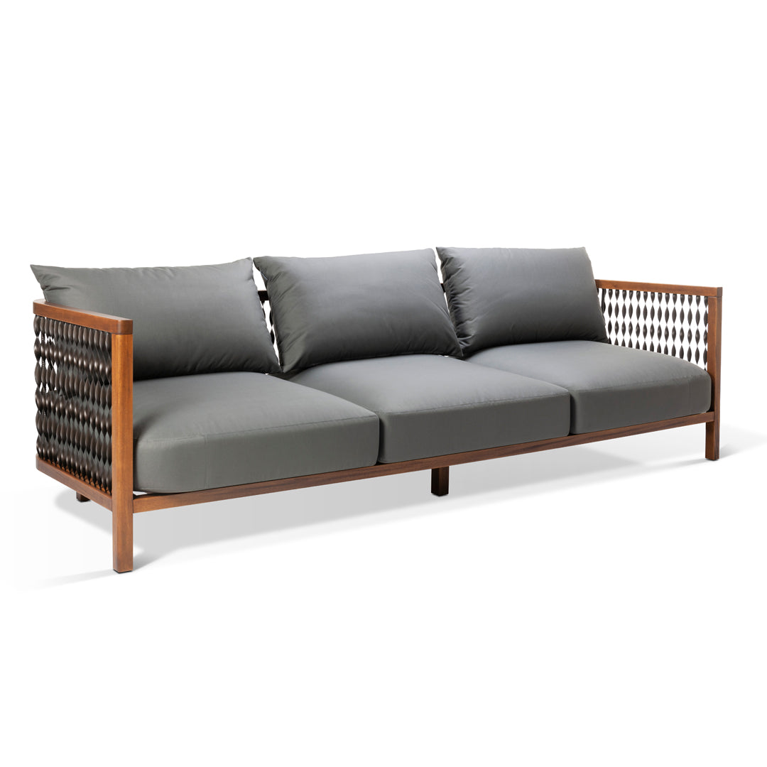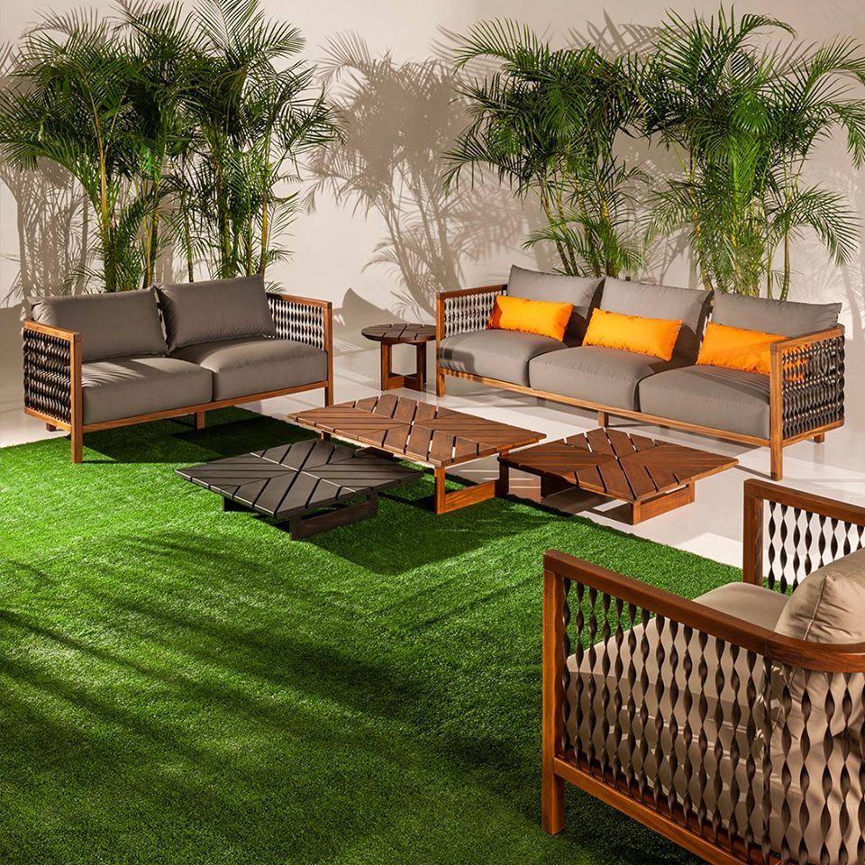 La cultura de los primeros habitantes de la Polinesia es la inspiración de la colección Maori, que buscó la referencia a los elementos característicos de este pueblo, como la construcción de sus hábitats y sus tatuajes, para crear los detalles clave de sofás, tumbonas, sillones y mesas. En esta propuesta aparecen las fibras retorcidas y los recortes de madera con diseños geométricos, que recuerdan las imágenes corporales de los miembros de la tribu. Llenas de volumen y movimiento, las piezas buscan traducir las sensaciones de la naturaleza en la ambientación de los espacios exteriores.