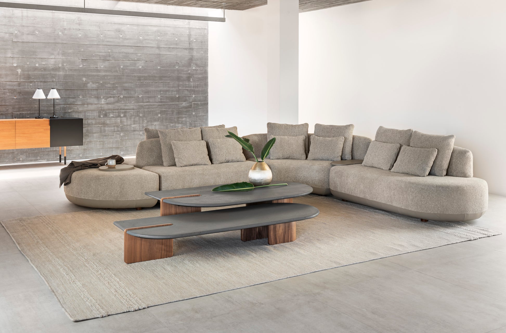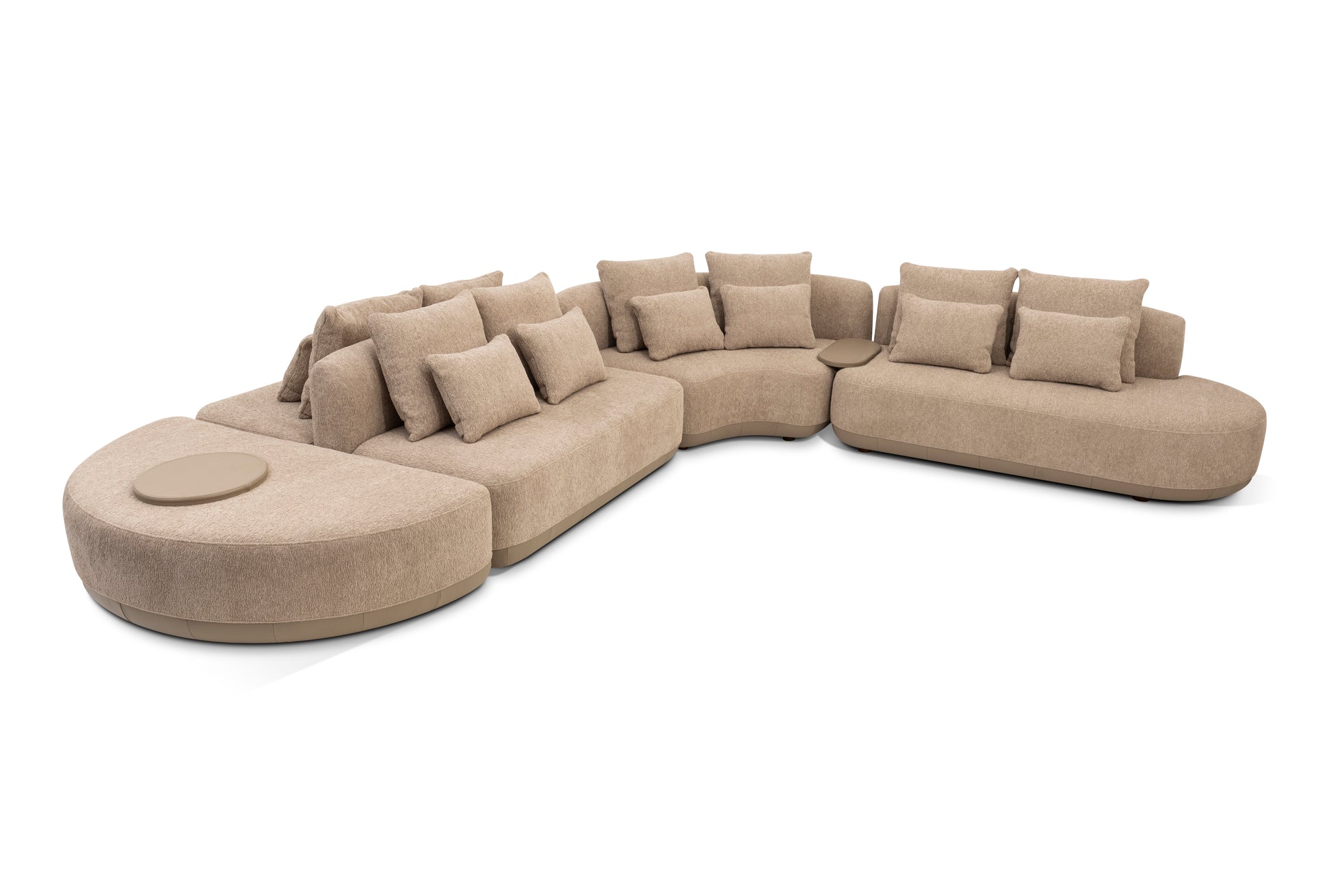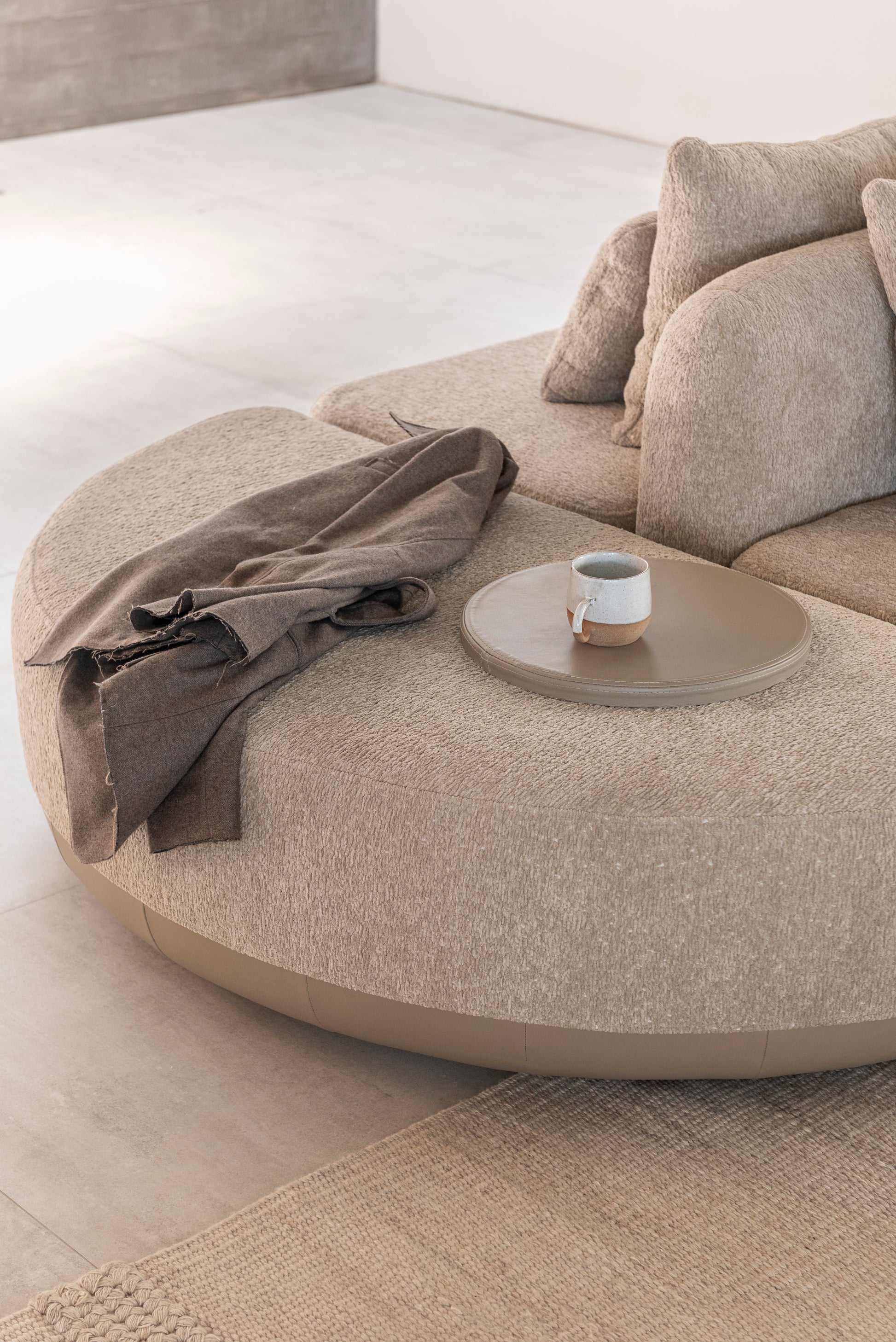 Con un estilo contemporáneo, la colección Donato se caracteriza por modulaciones desenfadadas que permiten diferentes composiciones, especialmente para los módulos de acabado. Su diferencial radica en los detalles de cuero junto con costuras de contraste que proporcionan tanto contraste como armonía al revestimiento de tela. Contribuyendo a su estilo moderno y funcional, la colección Donato ofrece la posibilidad de adjuntar mesas auxiliares cubiertas de cuero a sus módulos, piezas encantadoras que realzan la versatilidad y la elegancia de las numerosas composiciones que se pueden crear. ¡El límite es tu creatividad!