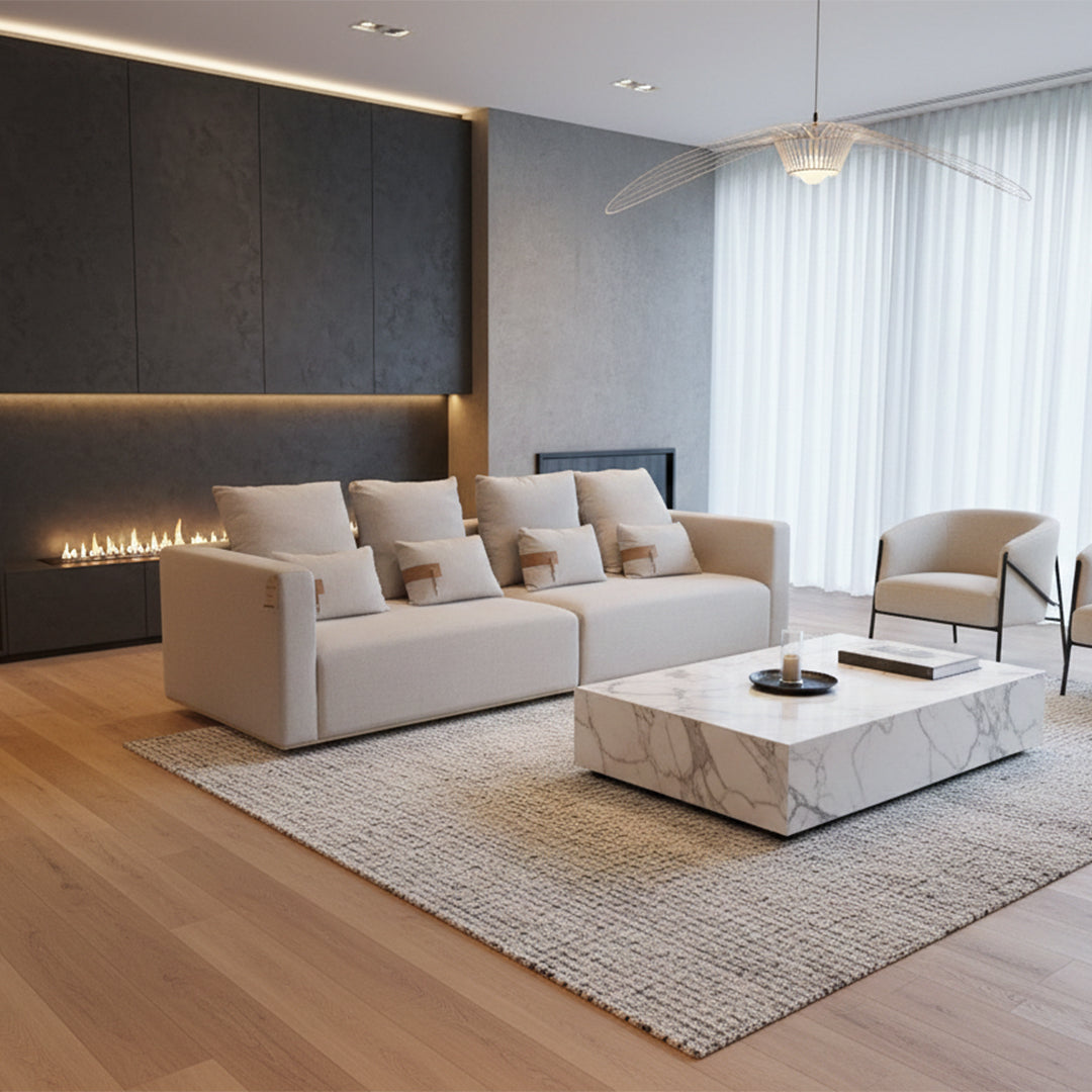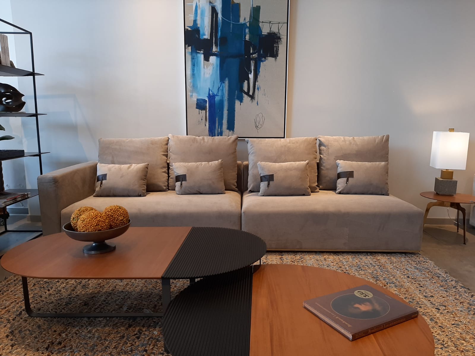 La colección Sintra se caracterizó por ser un espacio, un espacio de convivencia e interacción, donde desconectamos del mundo exterior, relajándonos y disfrutando del confort del hogar. De estilo contemporáneo y modulaciones más relajadas, permite diferentes composiciones, principalmente para los módulos de acabado. Además, fue diseñado para ocupar el centro de los ambientes o incluso como una forma de dividirlos ya que el destaque está en la parte posterior del producto, amarres de cuero y herrajes de metal, pequeños detalles que dan elegancia y refinamiento al ambiente.